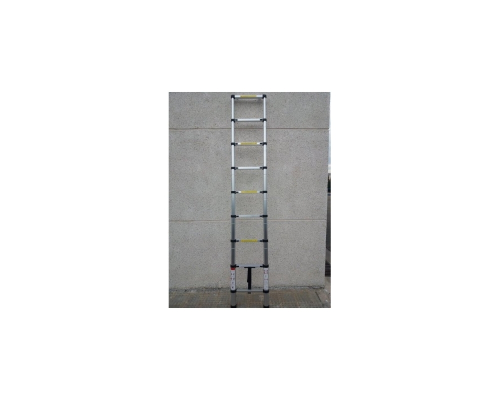 Escada robusta e telescópica em alumínio muito leve. Fácil de guardar quando dobrado e com altura estendida de 2,60m.
