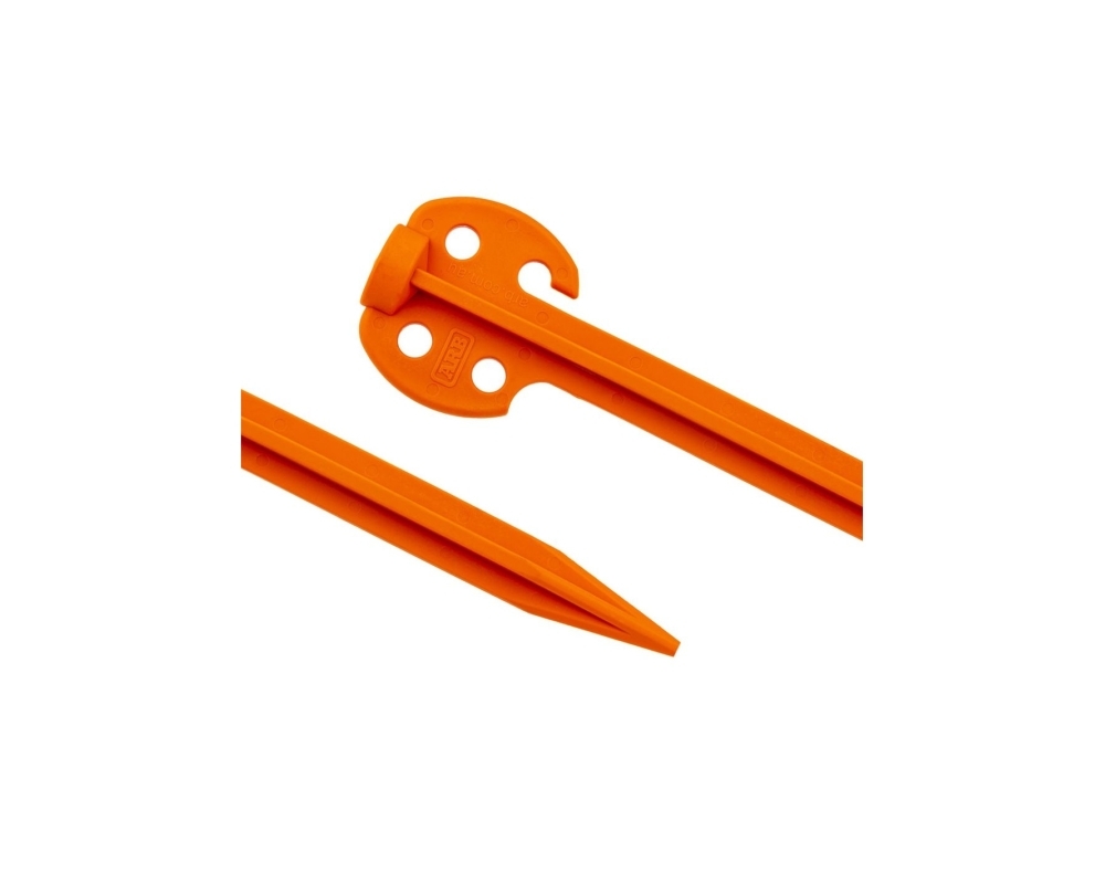 Fabricado em policarbonato laranja de alta visibilidade, para facilitar a localização à noite e evitar tropeços. São utilizados para fixação de ventos em toldos e tendas (em camping e caravanismo). Além disso, o pack pode ser completado adicionando os cabos de sustentação refletivos ARB com tensor e mola: ver referência IBE041220.