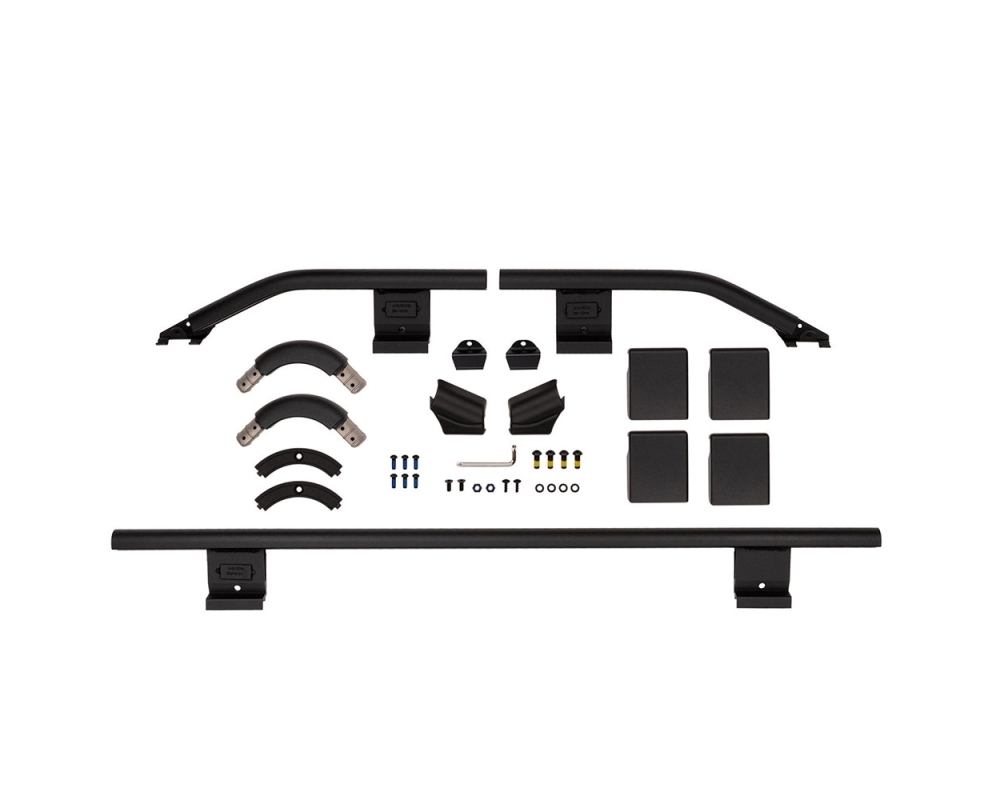 O sistema de trilhos BASE Rack está disponível para cobrir todo o rack, 3/4, 1/4 ou apenas as laterais. Os trilhos são fixados de forma rápida e fácil ao perfil existente ao redor da estrutura. Assim, o proprietário pode personalizar o rack de teto a seu gosto com um sistema de grades completo que pode ser instalado e removido em apenas alguns minutos.