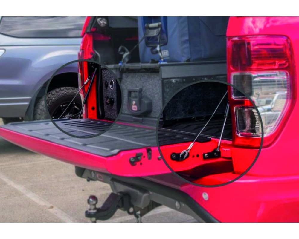 O amortecedor do lado do passageiro auxilia no abaixamento lento da porta traseira que, uma vez aberta, pode ser liberada e continuada a baixar sem ajuda e de maneira controlada. Do lado do motorista, o amortecedor ajuda a fechar a porta traseira; facilitando e conseguindo o levantamento com um simples movimento de uma mão.