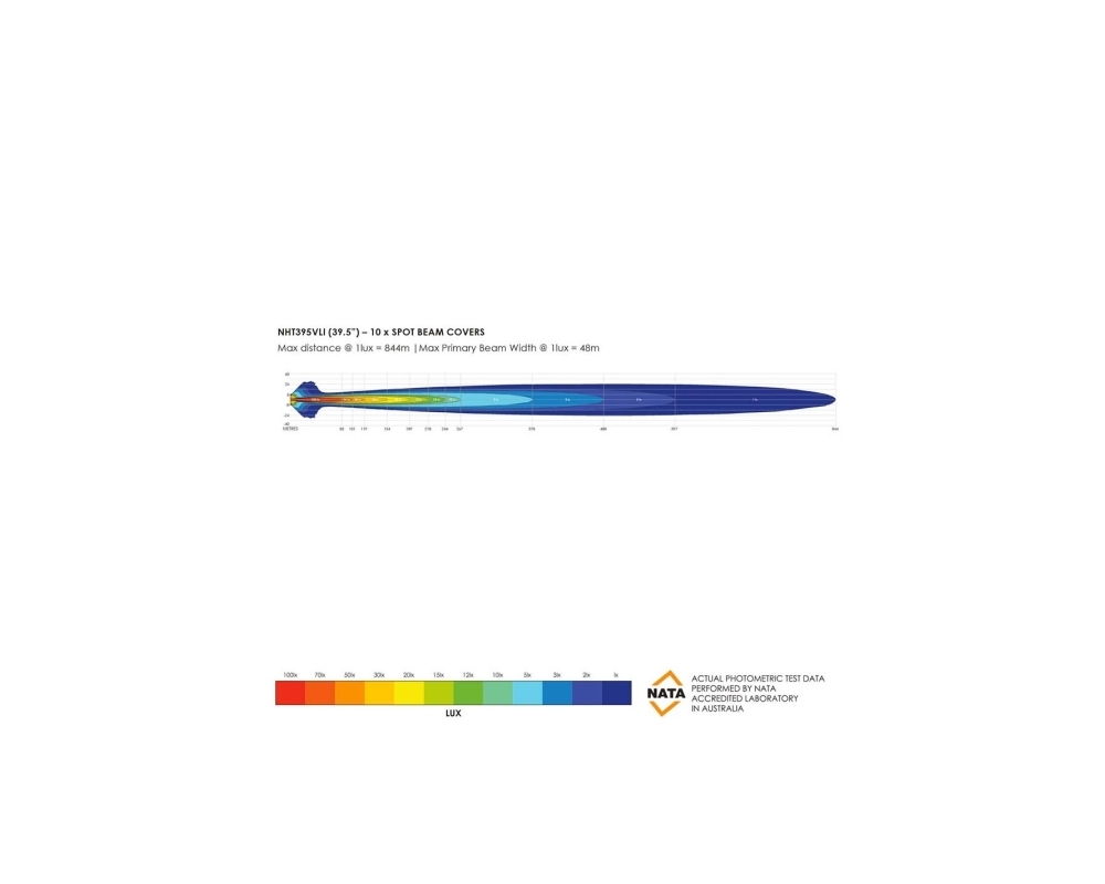 - Largura máxima do feixe primário a 1 lux (spot): 48 m