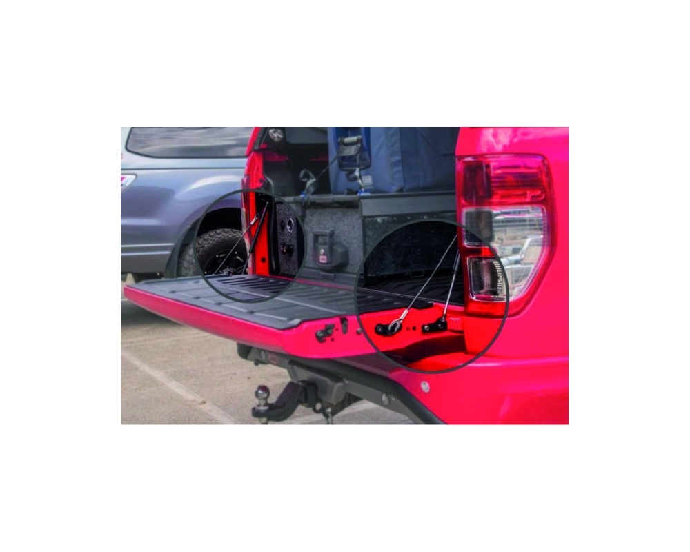 O amortecedor do lado do passageiro auxilia no abaixamento lento da porta traseira que, uma vez aberta, pode ser liberada e continuada a baixar sem ajuda e de maneira controlada. Do lado do motorista, o amortecedor ajuda a fechar a porta traseira; facilitando e conseguindo o levantamento com um simples movimento de uma mão.