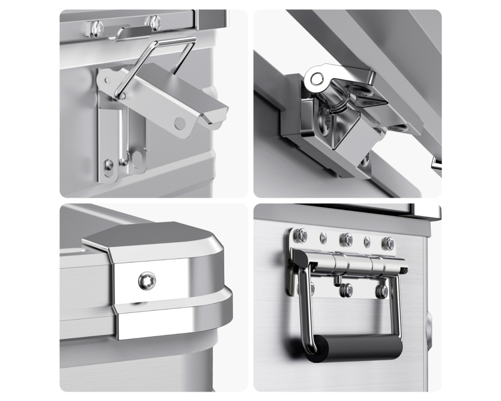 Iluminação LED automática. A luz LED interna acende ao abrir a tampa, facilitando a visibilidade mesmo à noite ou em condições de pouca luz.