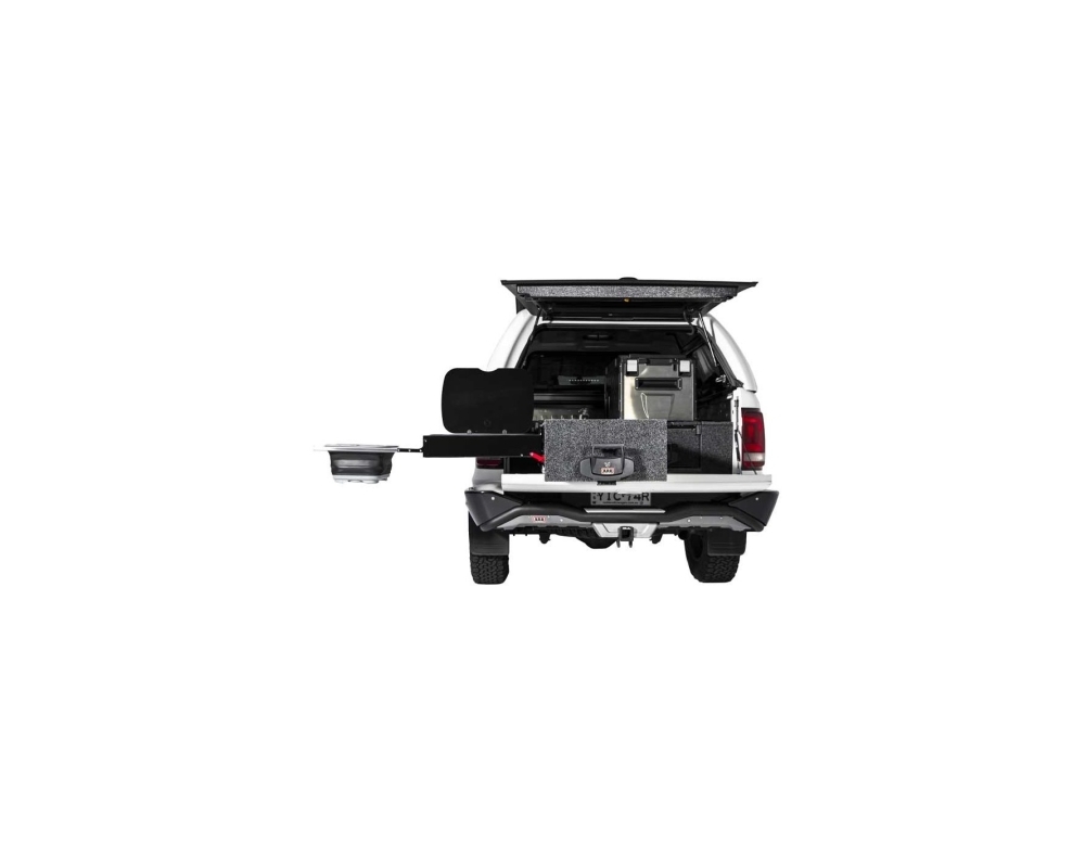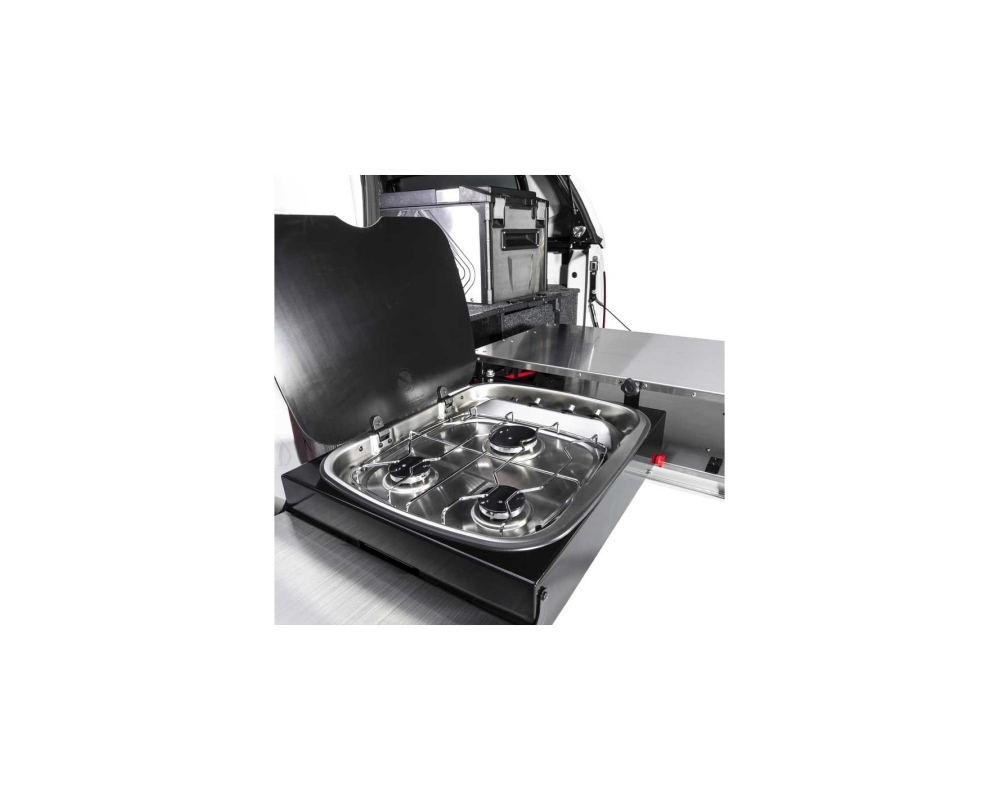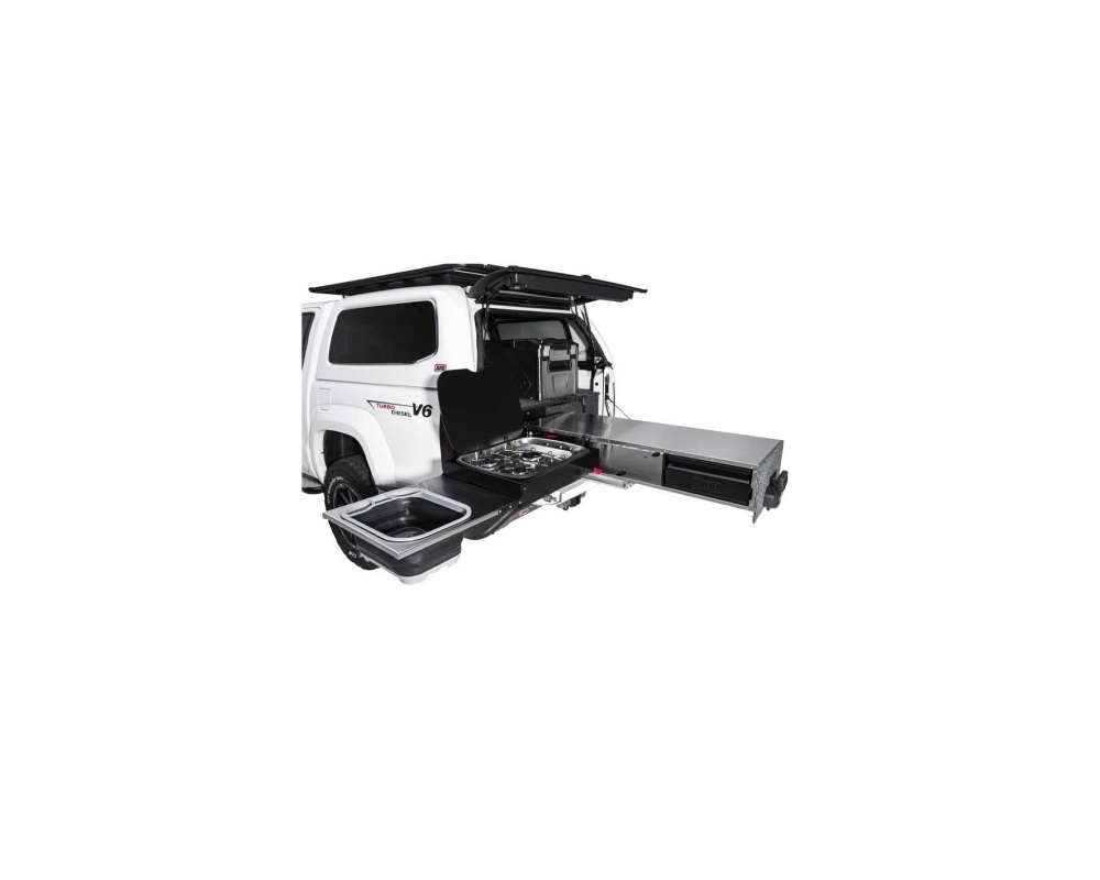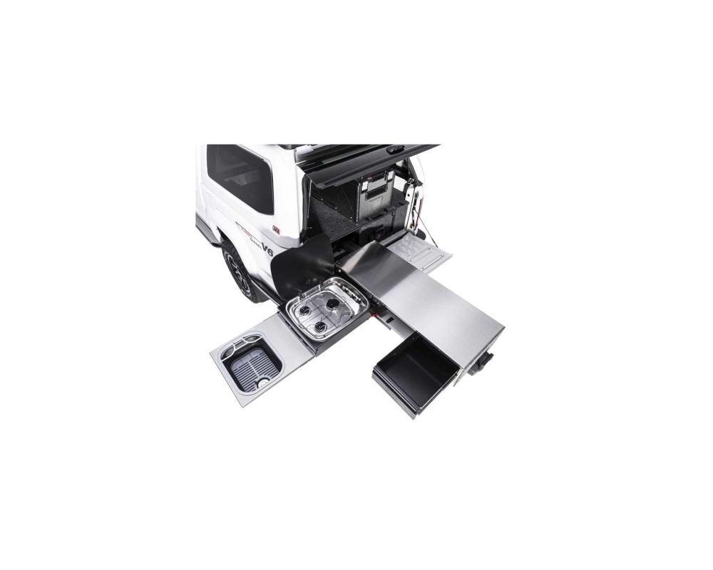 A cozinha deslizante ARB foi especificamente concebida para se integrar perfeitamente com os blocos de gavetas ARB. Este novo móvel é fabricado com as mesmas medidas (1355mm) das gavetas utilizadas nas picapes (só está disponível neste tamanho) e pode ser combinado com outras gavetas da gama e é compatível com os painéis laterais específicos de cada veículo. Também pode ser instalado sem necessidade de outra gaveta, como unidade autónoma, em autocaravanas, 4x4 e reboques comerciais e autocaravanas.