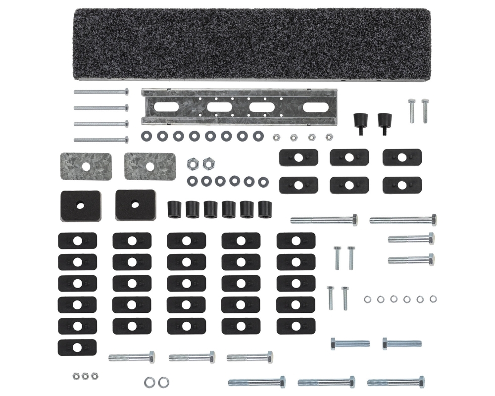 Adaptadores de piso lateral opcionais para kits de piso lateral específicos do veículo com travas fáceis completam a instalação e fornecem áreas de armazenamento adicionais dentro da cabine ou bandeja