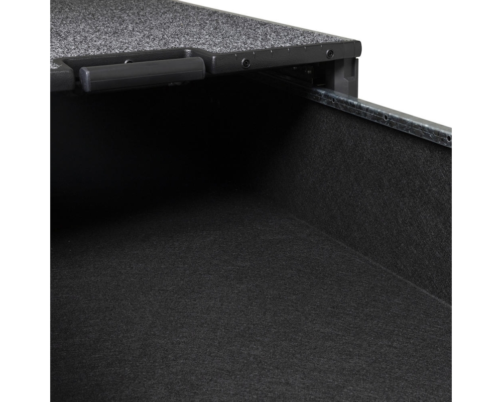 Kits opcionais de piso lateral específicos do veículo com travas fáceis completam a instalação e fornecem áreas de armazenamento adicionais dentro da cabine ou bandeja