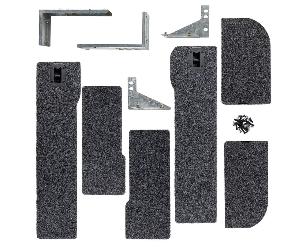 O kit de painéis laterais específico do veículo preenche a área entre a borda externa da gaveta e a lateral do veículo. O painel lateral completa o piso e proporciona uma superfície superior plana maior, mantendo o acesso às áreas de armazenamento do arco da roda.