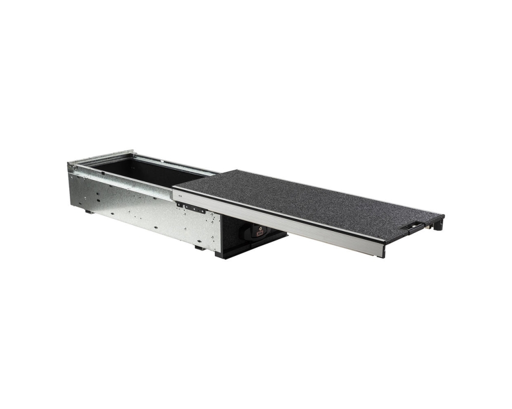 Kits opcionais de piso lateral específicos do veículo com travas fáceis completam a instalação e fornecem áreas de armazenamento adicionais dentro da cabine ou bandeja