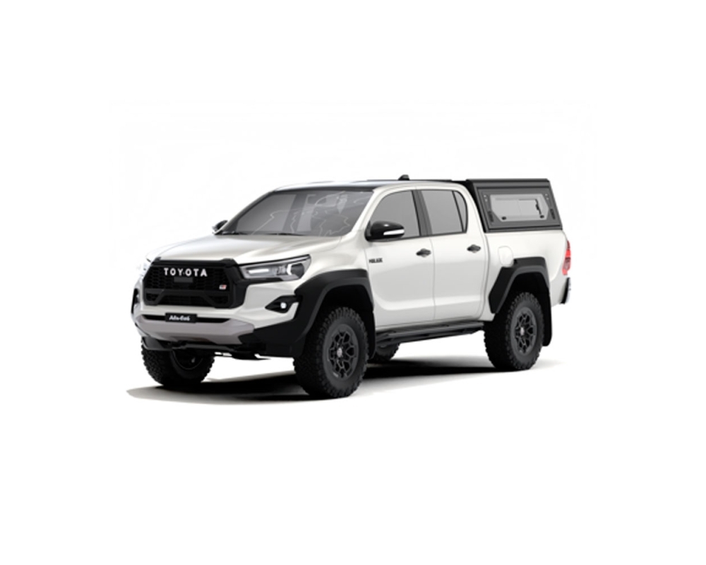 ALU-CAB | HARD-TOP "CONTOUR" PARA TOYOTA HILUX REVO (2016+) COM JANELAS LATERAIS REBATÍVEIS E VIDROS DESLIZANTES.