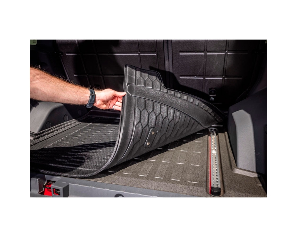 Tapete de bagageira 3D feito à medida para Ineos Grenadier. Fabricado em borracha termoplástica, 100% impermeável e com design de duplo nível para máxima proteção e efeito antiderrapante.