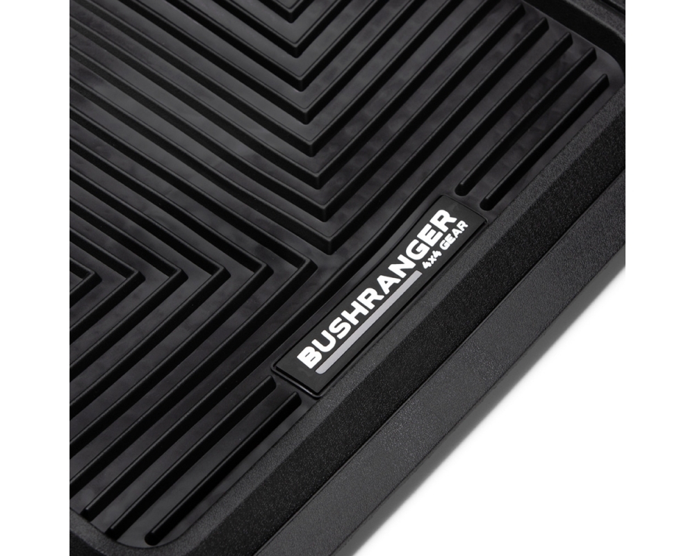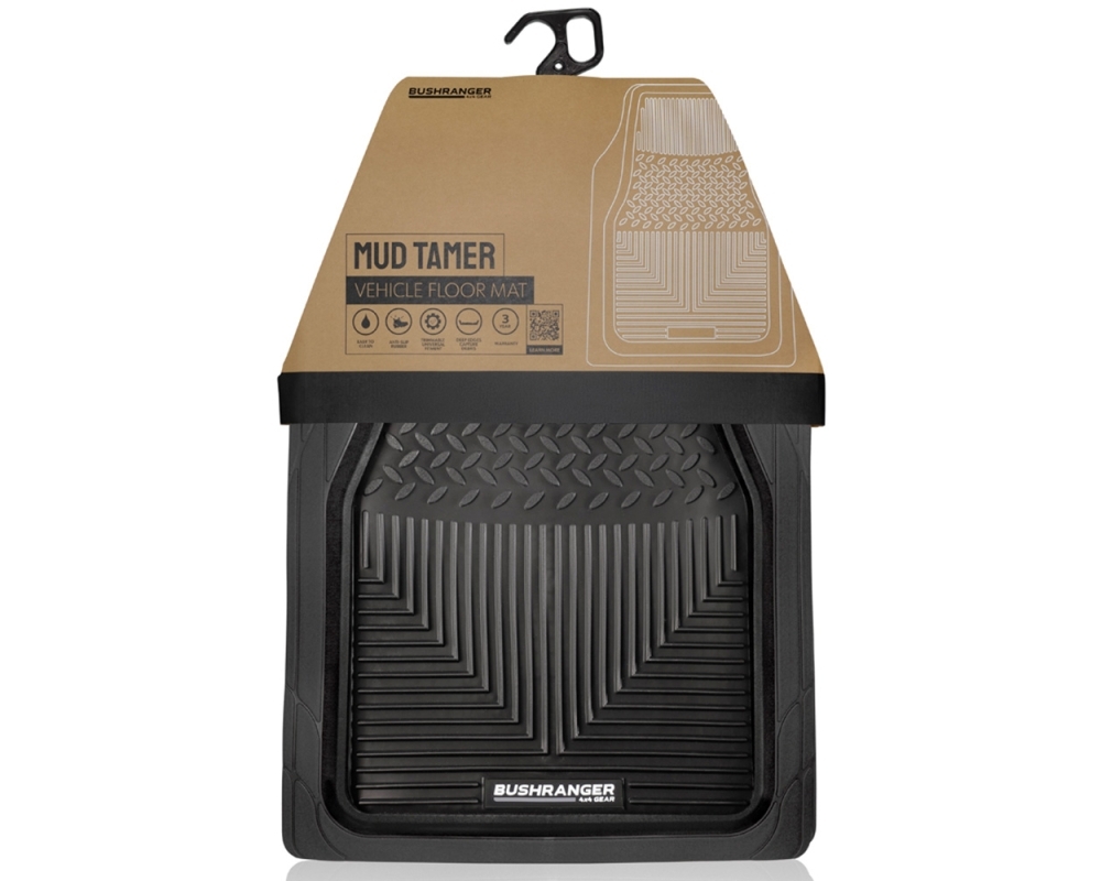 Os tapetes Bushranger® Mud Tamer são projetados com bordas profundas para coletar todos os detritos que entram no veículo, desde areia, cascalho, lama, neve e até mesmo água que pode estar contida dentro dos tapetes.
