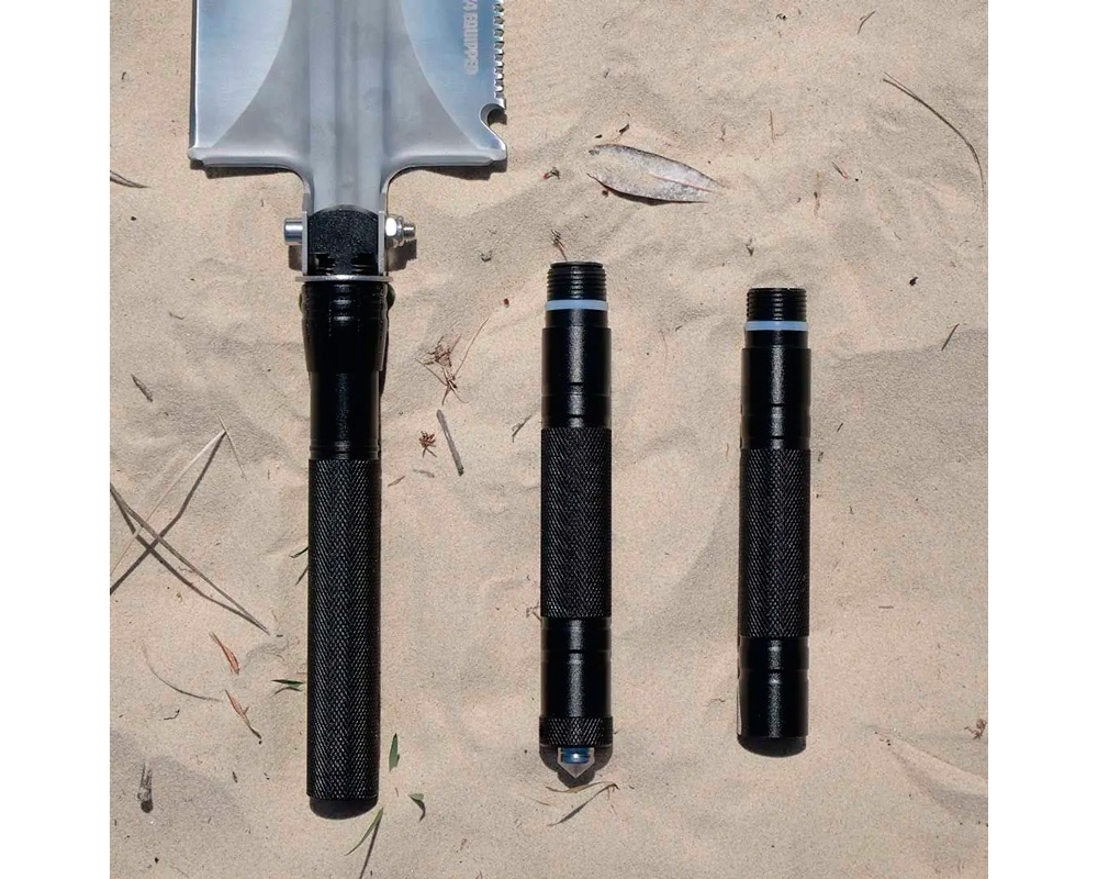 Perfeito para levar sempre no veículo. É uma pá removível e multifuncional que pode ser armazenada em uma pequena bolsa de transporte. É composto por 3 seções interligadas. Possui serra, chave de fenda plana e estrela.