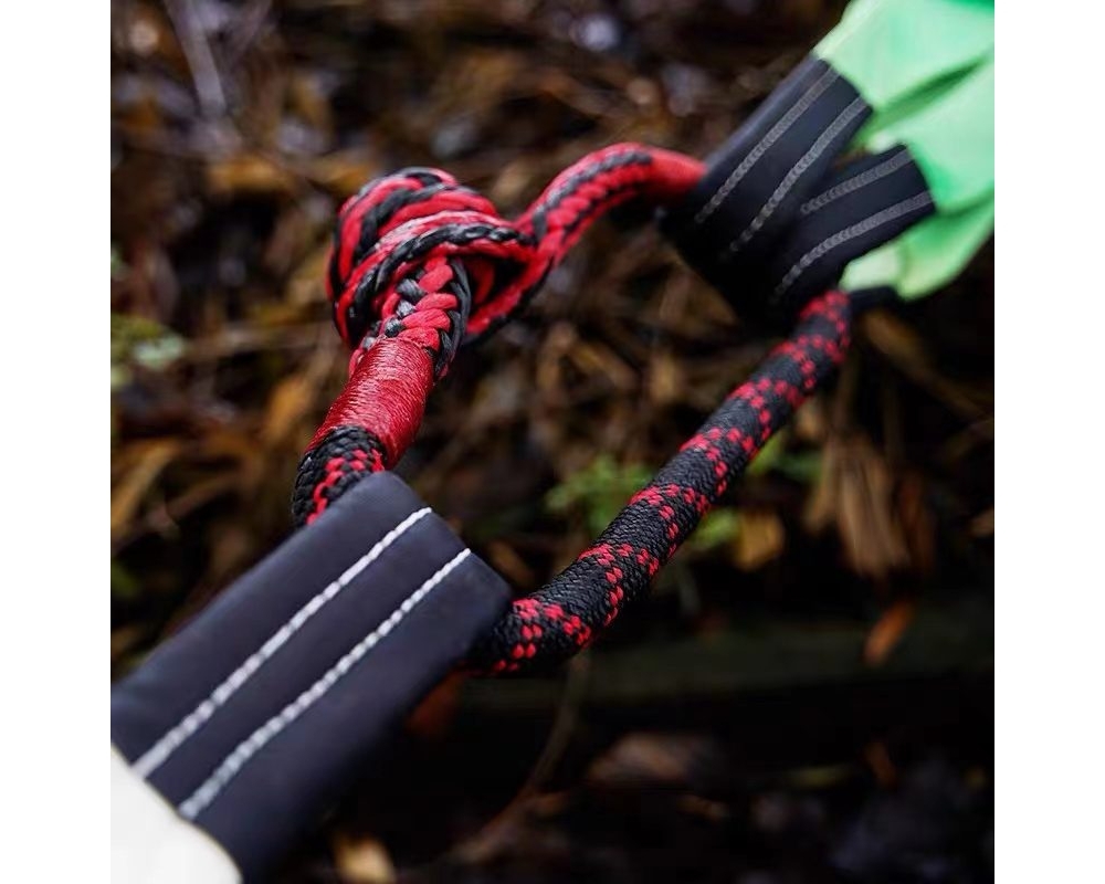 Pode ser aberto facilmente e tensionado sob carga. É flexível e reduz o risco de lesões em caso de uma hipotética ruptura.