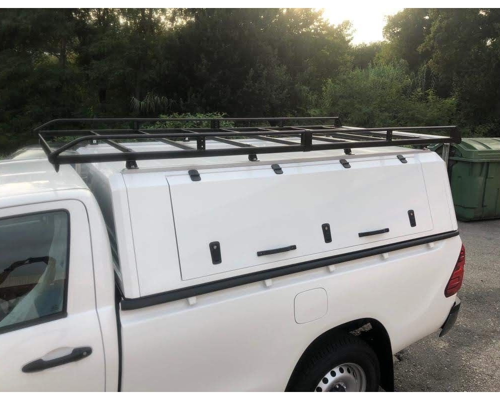 FOURWHEELER | RACK REFORÇADO PARA HARDTOP COM CANTILEVER SOBRE CABINA, COM DEFLETOR E ROLO (RSI SMARTCAP; CABINE EXTRA)