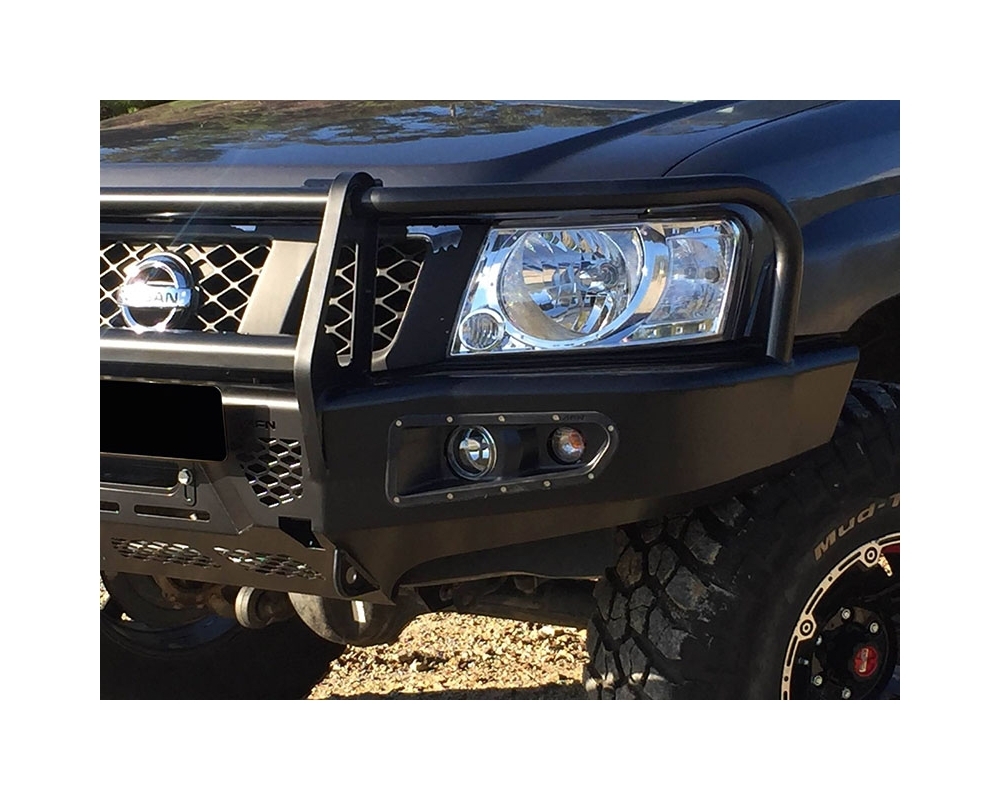 AFN | PARA-CHOQUE DIANTEIRO COM BASE DE GUINCHO E COM FUROS PARA FARÓIS. VERSÃO ÁFRICA PARA NISSAN PATROL GR Y61 1998-2010 (SOMENTE 2005-)