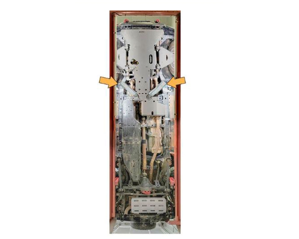 Projetado especificamente para as versões Bronco e Ranger Raptor (não compatível com motores 2,3 L) e ajuda a proteger as partes críticas do eixo traseiro contra impactos, pedras ou terrenos irregulares: a travessa da transmissão e os braços da suspensão.