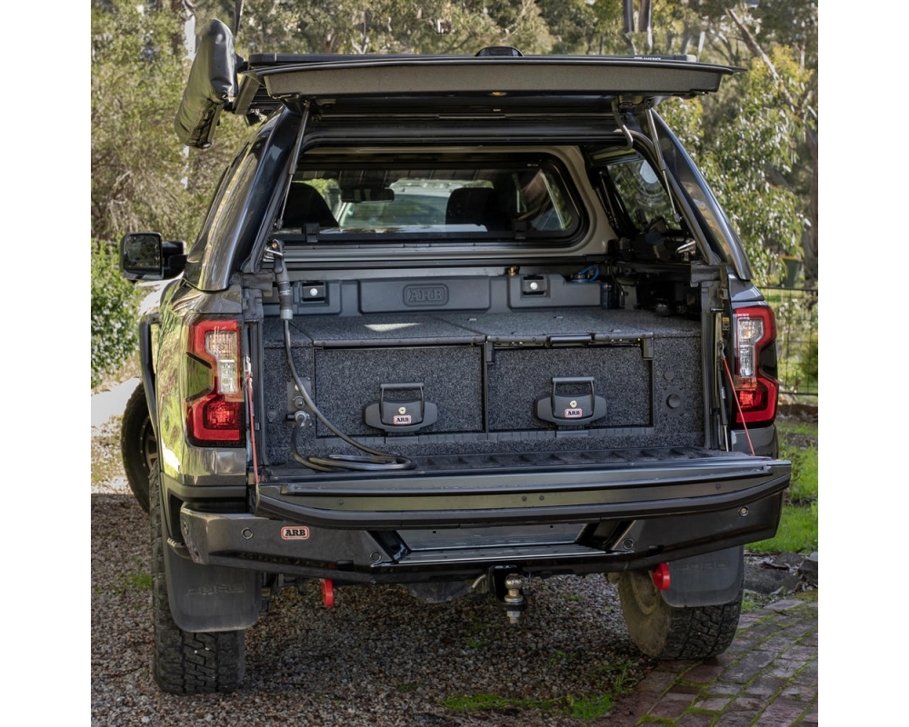 Tanque de água integrado de 45 L projetado pela ARB para Ford Ranger & Raptor (2022+) Cabine Dupla. Fabricado em polietileno de qualidade alimentar e compatível com blocos de gavetas ARB. Ideal para expedições, trabalho ou aventuras off-road.