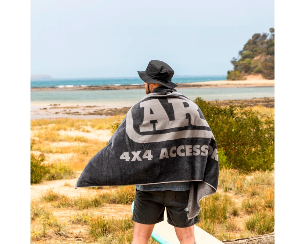 Perfeito para se secar depois de verificar a profundidade da água, dar um mergulho num oásis do interior ou simplesmente desfrutar de um dia de praia. Feita em 100% algodão, esta toalha extragrande possui um prático bolso no canto com zíper para guardar objetos de valor. Em uma moderna cor preta e branca, a toalha apresenta nosso grande logotipo Adventure Awaits no lado esquerdo e o logotipo ARB 4x4 Accessories em uma faixa branca dupla na borda direita. Vem em uma prática bolsa de malha que pode servir como bolsa de roupa suja ou de viagem para a toalha.