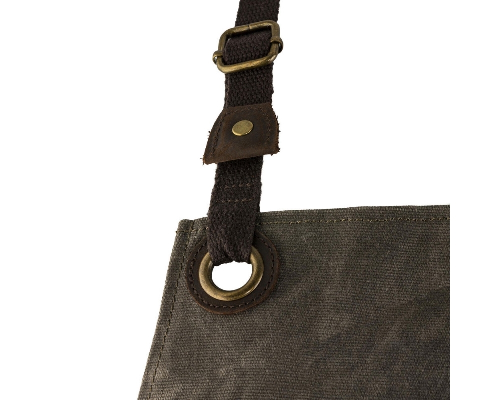 Construído em lona encerada durável com acabamento em couro genuíno.