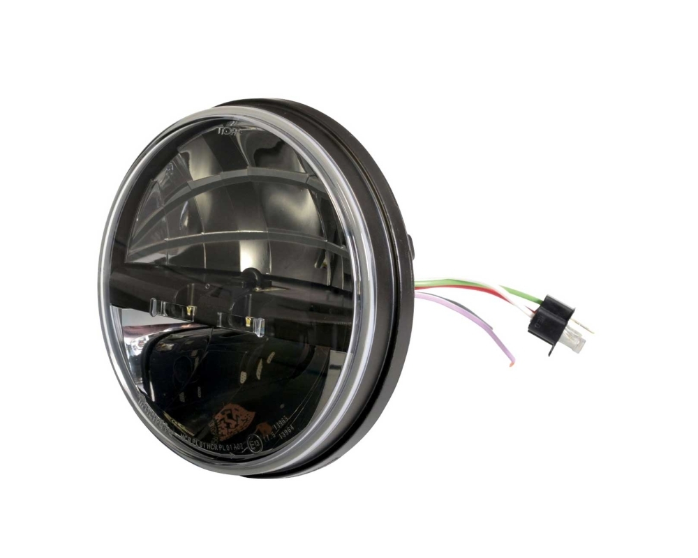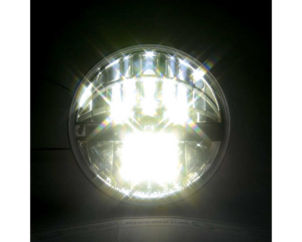 Farol LED totalmente homologado, pode ser instalado em qualquer veículo que instale farol redondo de 7 polegadas de diâmetro e circule em vias públicas sem problemas, sem necessidade de realização de projeto.