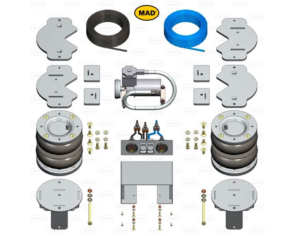As molas pneumáticas instaladas com molas originais ou molas de lâmina permitem ajustar a suspensão do veículo às necessidades do condutor (molas pneumáticas mais duras ou mais macias, maior ou menor altura do carro). A suspensão pneumática auxiliar proporciona muito mais conforto e segurança, podendo ser facilmente operada pelo painel ou nos postos de gasolina.