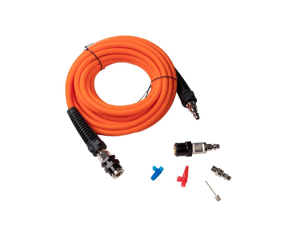 A mangueira resistente a altas temperaturas é fabricada no Japão, tem 7 m de comprimento e suporta uma pressão nominal de 150 psi (10 bar). Essa melhoria, juntamente com a instalação da liberação rápida e da nova bolsa de armazenamento de acessórios de neoprene, torna a experiência geral do usuário mais organizada e fácil de usar.