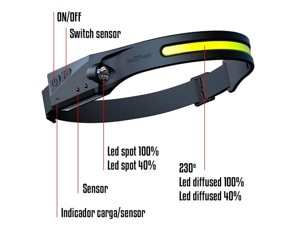 BULLFACE | LED FRONTAL (USB-C) COM LIGAÇÃO AUTOMÁTICA