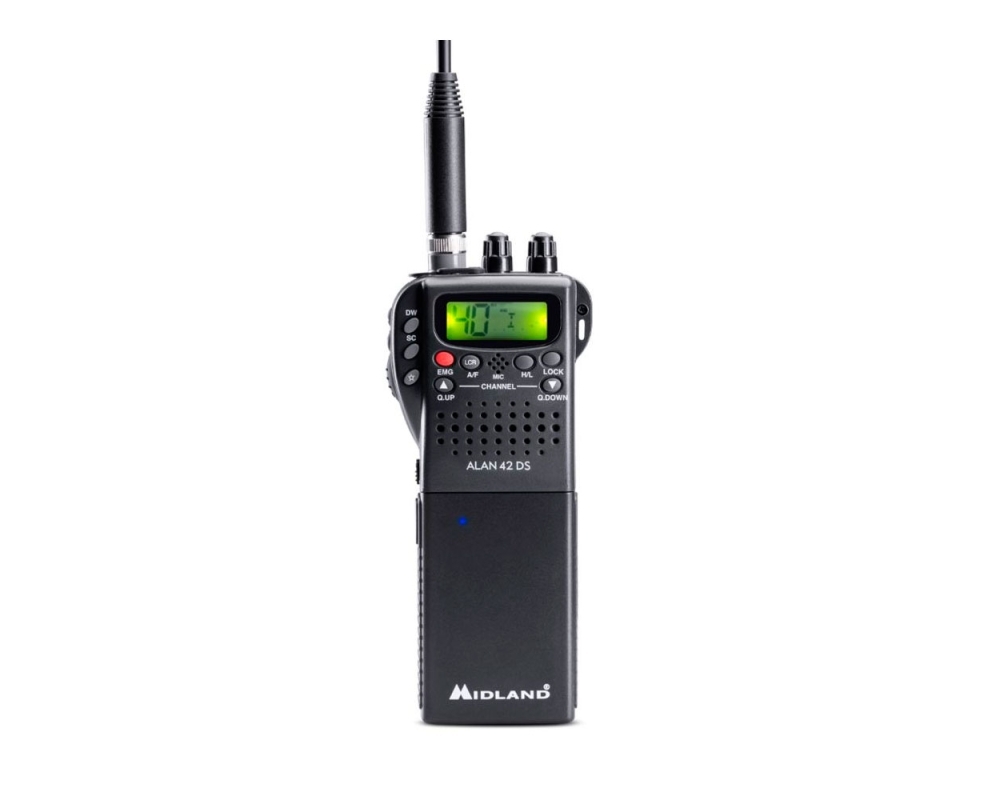 ALAN 42 DS Lithium Edition é o transceptor CB portátil mais vendido da Midland, com silenciador digital que é ativado automaticamente ao receber o sinal de entrada, eliminando a necessidade de intervenção manual.