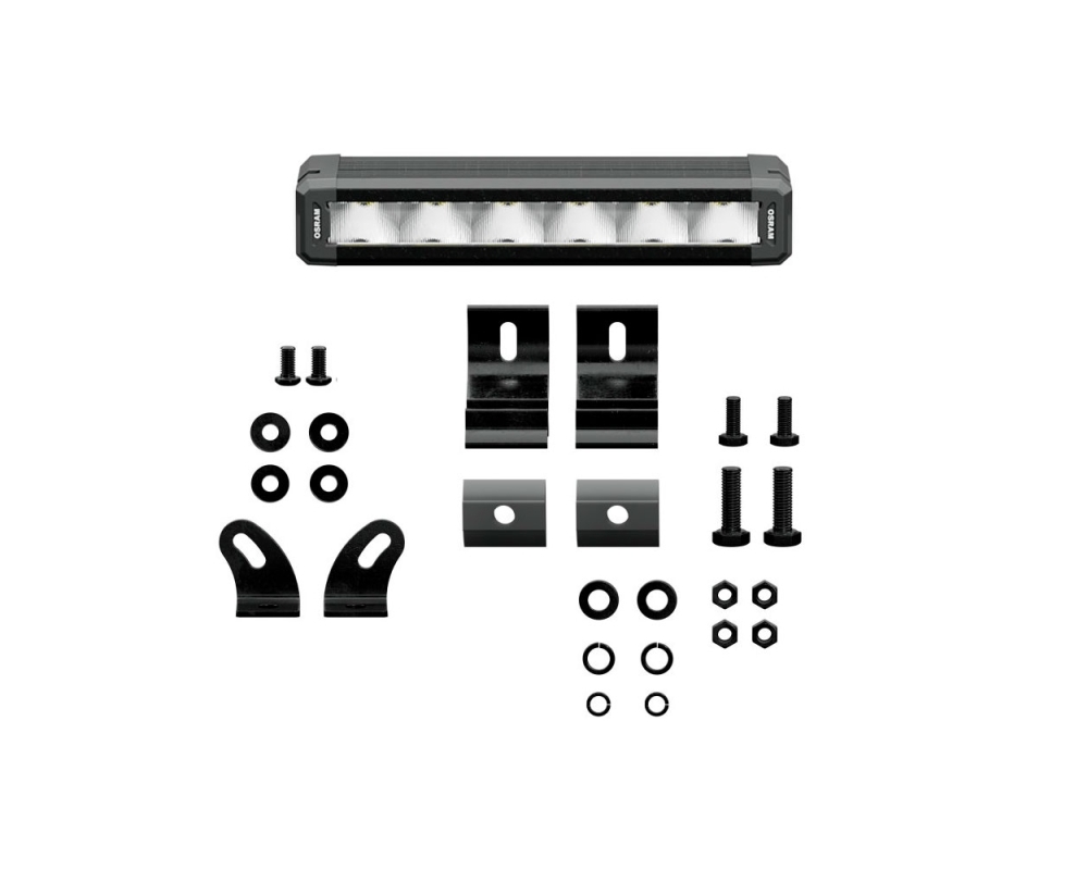 A barra de luz OSRAM LEDriving VX180-SP SR oferece grande visibilidade em estradas escuras, estradas florestais, fora de estrada, tanto dentro como fora de estrada. Com os seus 6 LEDs potentes de alto desempenho, a luz de condução tem um alcance de até 320 metros e, portanto, oferece ao condutor uma visão impressionante dentro e fora da estrada. Mesmo com pouca luz e visibilidade reduzida devido a influências ambientais externas, a luz de condução com até 6000 Kelvin pode proporcionar condições semelhantes às da luz do dia. O pacote de potência de até 1.400 lúmens se destaca pela alta eficiência óptica e distribuição homogênea da luz. O farol alto é caracterizado por seu design compacto de uma fileira, que garante uma aparência elegante. Além disso, a barra de luz vem com suportes padrão para diversas opções de montagem: pendente, independente e lateral. Versátil na aplicação, desafia inúmeras influências ambientais e, graças aos materiais de alta qualidade, como a caixa de alumínio e a lente estável em policarbonato, é particularmente leve e ao mesmo tempo robusto e resistente. O farol alto foi testado e validado com classes de proteção IP6K8 e IP6K9K em nosso laboratório de simulação ambiental com certificação DIN para influências externas extremas em termos de água, poeira, impactos, calor, frio e vibrações permanentes.