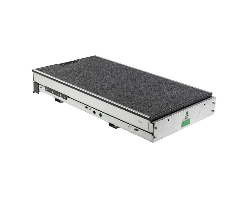 Roller Floor é um novo produto fantástico. O piso rolante fica apenas 140 mm acima do piso do veículo, permitindo uma montagem mais baixa e acesso mais fácil a itens como refrigeradores ou caixas de ferramentas. O Roller maximiza o espaço de armazenamento com uma bandeja deslizante integrada. Quando não está abrigando uma geladeira, o Roller Floor possui uma parte superior plana que é muito mais conveniente para colocar outros itens do que uma tradicional bandeja deslizante de aço para geladeira. Você já tentou colocar mantimentos em cima de uma bandeja tradicional da geladeira?
