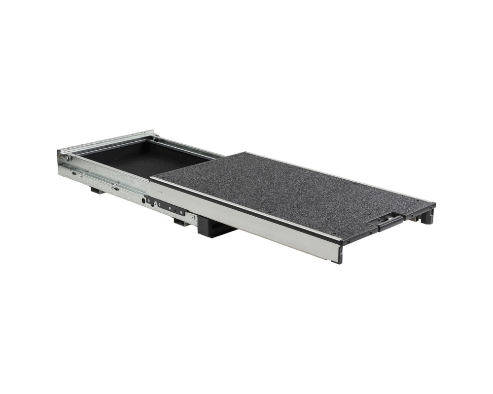Roller Floor é um novo produto fantástico. O piso rolante fica apenas 140 mm acima do piso do veículo, permitindo uma montagem mais baixa e acesso mais fácil a itens como refrigeradores ou caixas de ferramentas. O Roller maximiza o espaço de armazenamento com uma bandeja deslizante integrada. Quando não está abrigando uma geladeira, o Roller Floor possui uma parte superior plana que é muito mais conveniente para colocar outros itens do que uma tradicional bandeja deslizante de aço para geladeira. Você já tentou colocar mantimentos em cima de uma bandeja tradicional da geladeira?