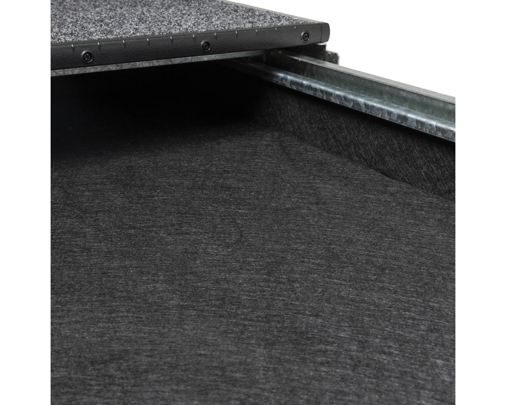 Adaptadores de piso lateral opcionais para kits de piso lateral específicos do veículo com travas fáceis completam a instalação e fornecem áreas de armazenamento adicionais dentro da cabine ou bandeja