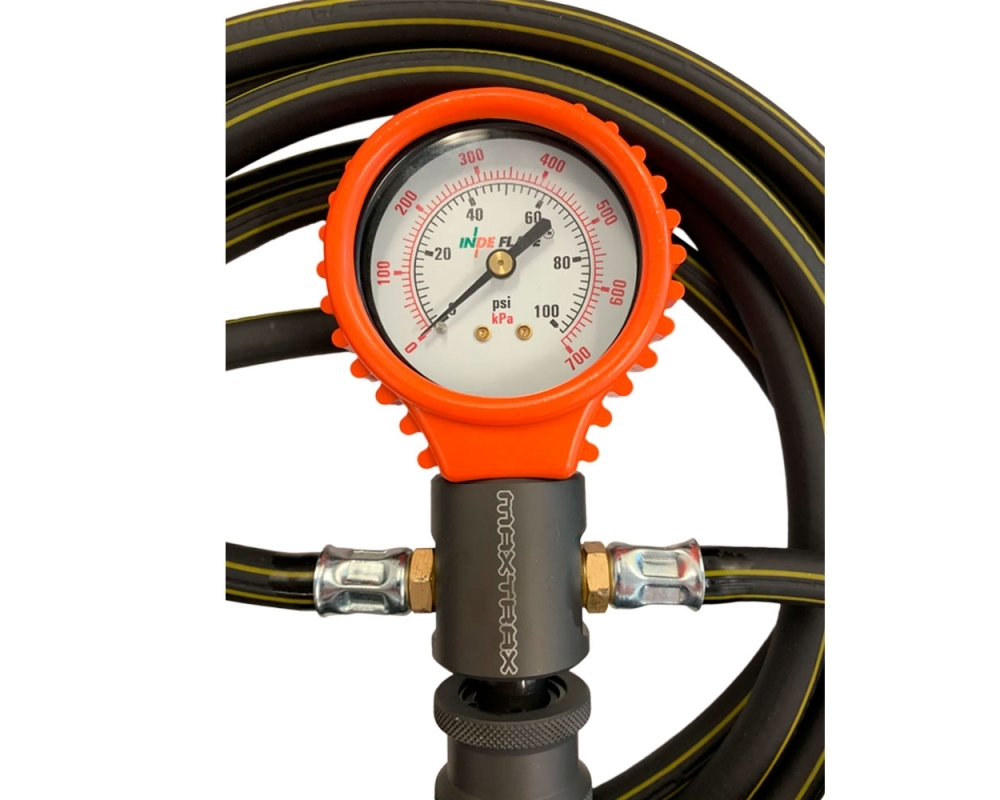 O manômetro MAXTRAX permite encher ou esvaziar quatro pneus ao mesmo tempo com total precisão. Ideal para veículos 4x4, campistas e expedições, este sistema portátil equilibra a pressão entre as rodas e conecta-se facilmente a um compressor. Fabricado em alumínio anodizado e latão niquelado para máxima durabilidade em condições extremas.