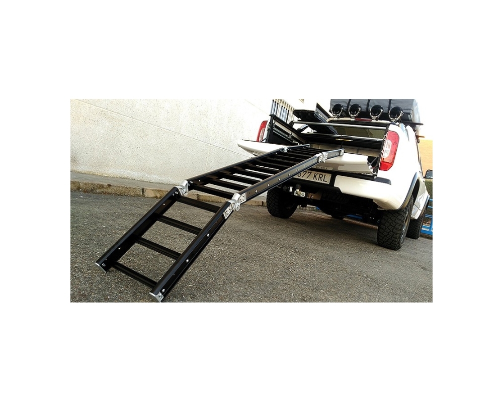 Este extensor permite ampliar o espaço de carga da pick-up aproveitando o espaço deixado pelo portão uma vez aberto sem o risco de queda da mercadoria graças aos 38cm de altura do corrimão.