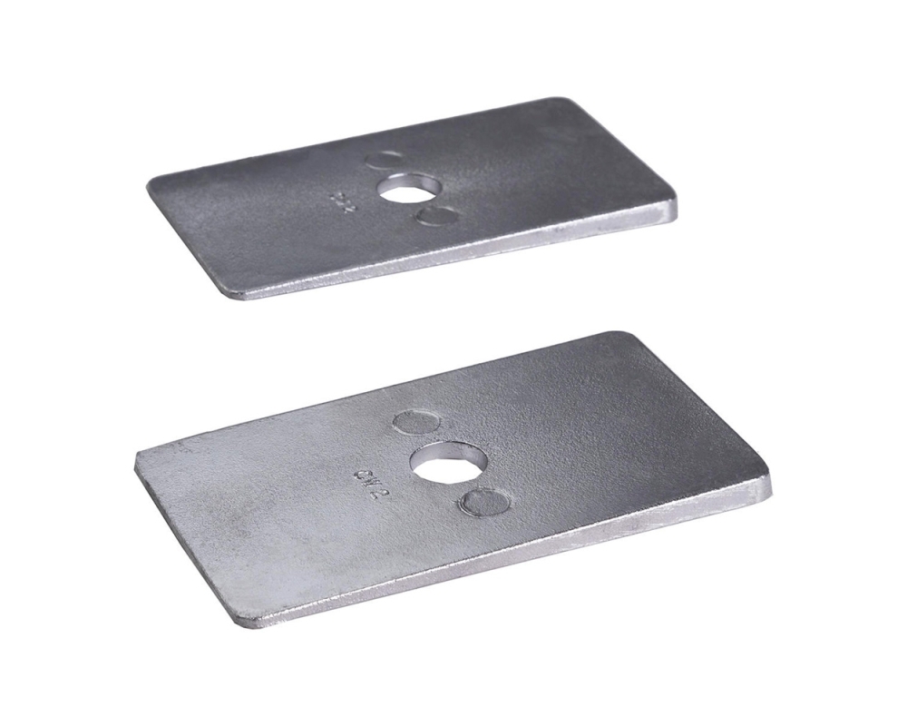 Cunha de alimentação de besta de aço de 2 graus. É usado para corrigir o rodízio do eixo quando a instalação de uma suspensão mais alta resulta em medidas de rodízio fora das especificações do fabricante.