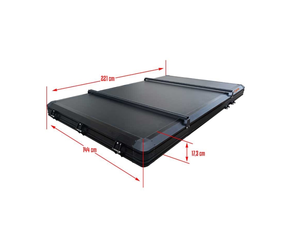 - Aberto: 221 x 144 x 100 (cm) (medida total incluindo fechos)